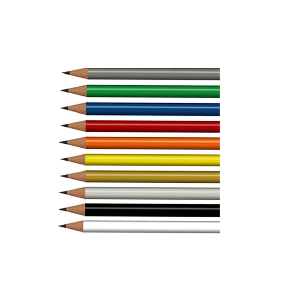 Painted pencil of PEFC certified wood, available round, six- or three-sided, also available long (17,5 cm) or with eraser (only round or six-sided) (price on request)