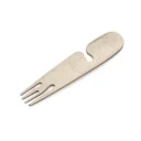 Innovative, robust cutlery set consisting of fork and spoon, made of biocircular plastic and wood fibres, recyclable, food-safe and dishwasher-safe