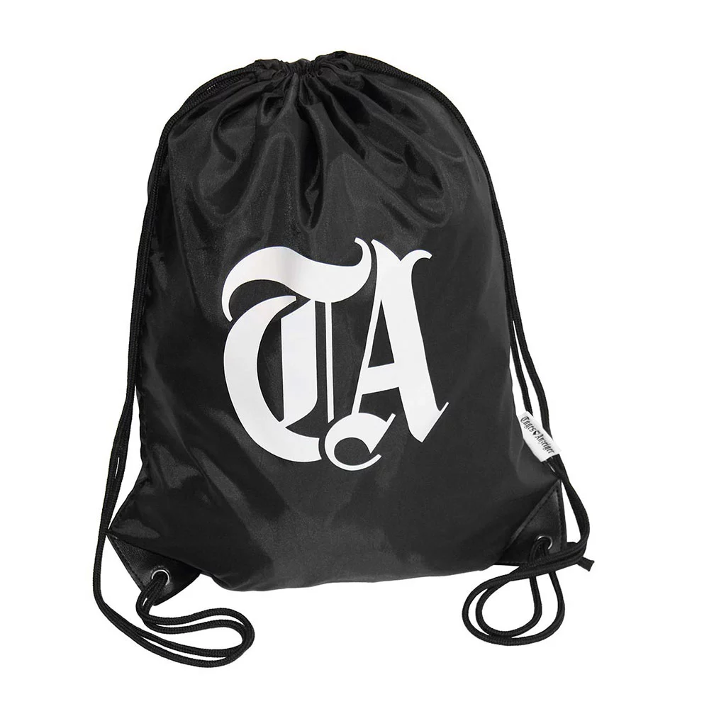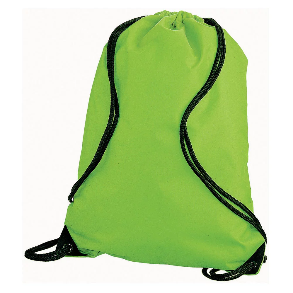 Light bag of 210D-polyester, draw cords also serve as shoulder straps, lower ends strengthened with metal eyelets, special designs possible (price on request)