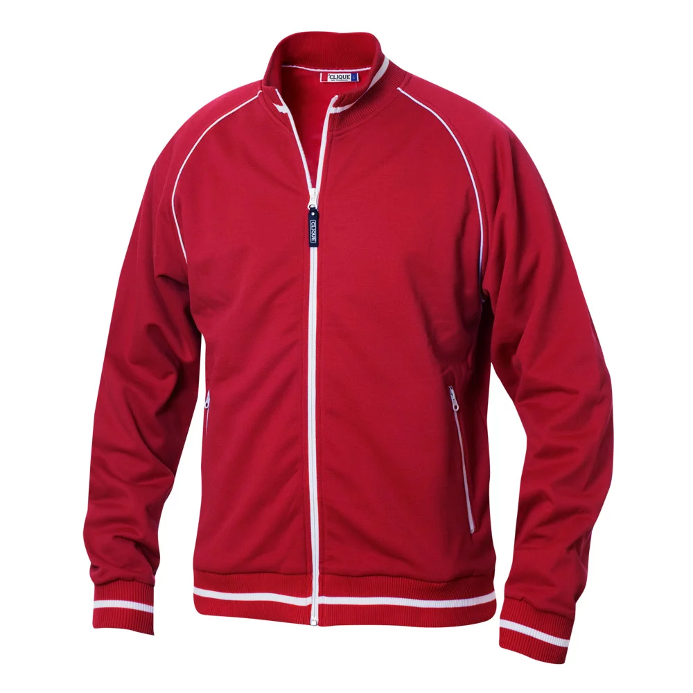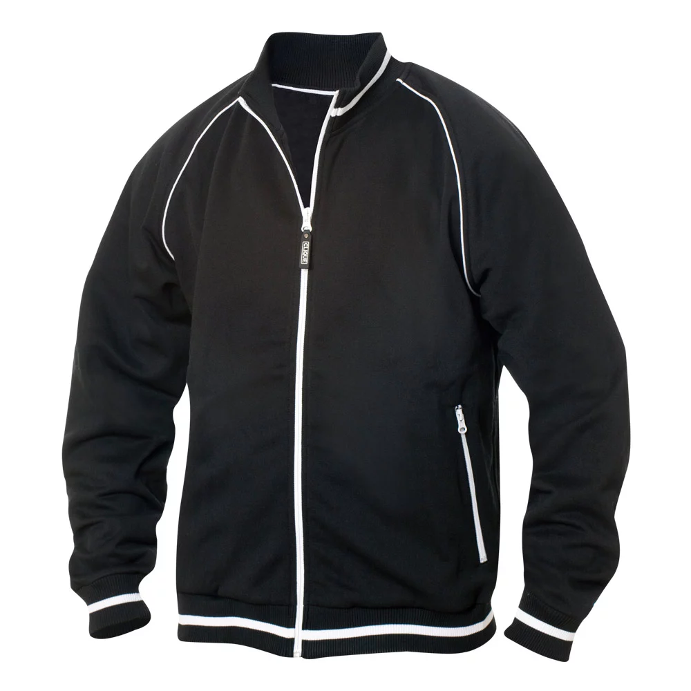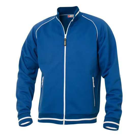 Clique unisex jacket with structured knit, combed interior, contrasting stripes on collar, band and cuffs, 2 side pockets with zipper in contrasting color