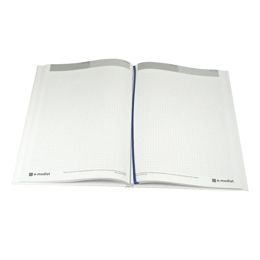 Elegant pad book with solid multicolor flap in your personal design, contents 152 pages, 80 g/m2, checked or lined, minimum order 500 pc, other formats and numbers of pages available (price on request)