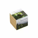 Small cube of real maple wood, directly planted with the supplied flower seeds and soil tab, with personalized advertising banner