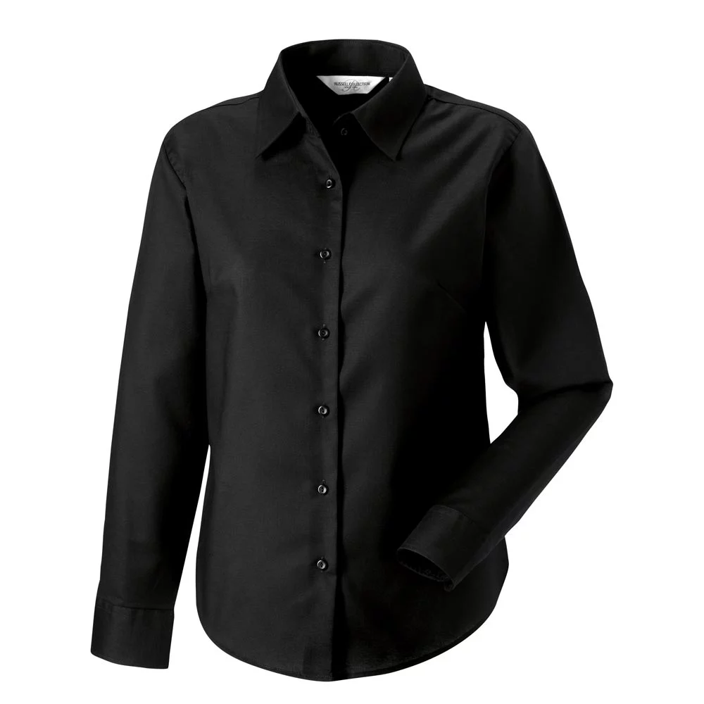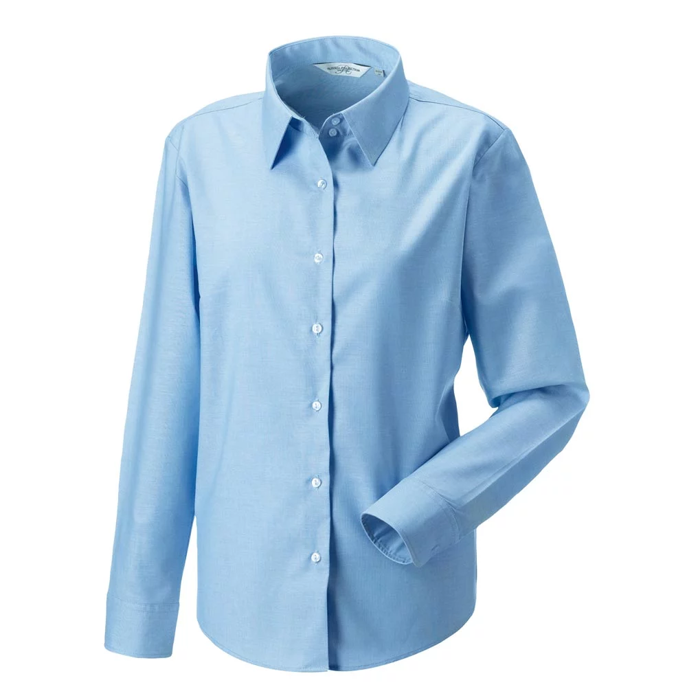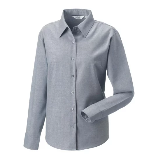 Russel long-sleeved women's blouse with classic collar, front and back darts for perfect fit, cuffs adjustable with 2 buttons, rounded hem