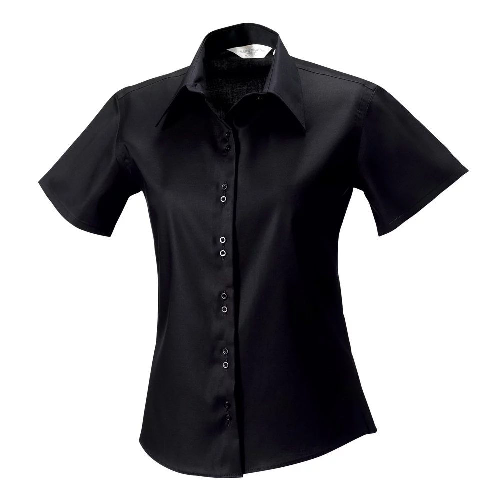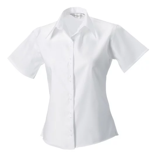 Russel short-sleeved women's blouse of no-iron fabric, fashionably cut collar, double button closure, fitted