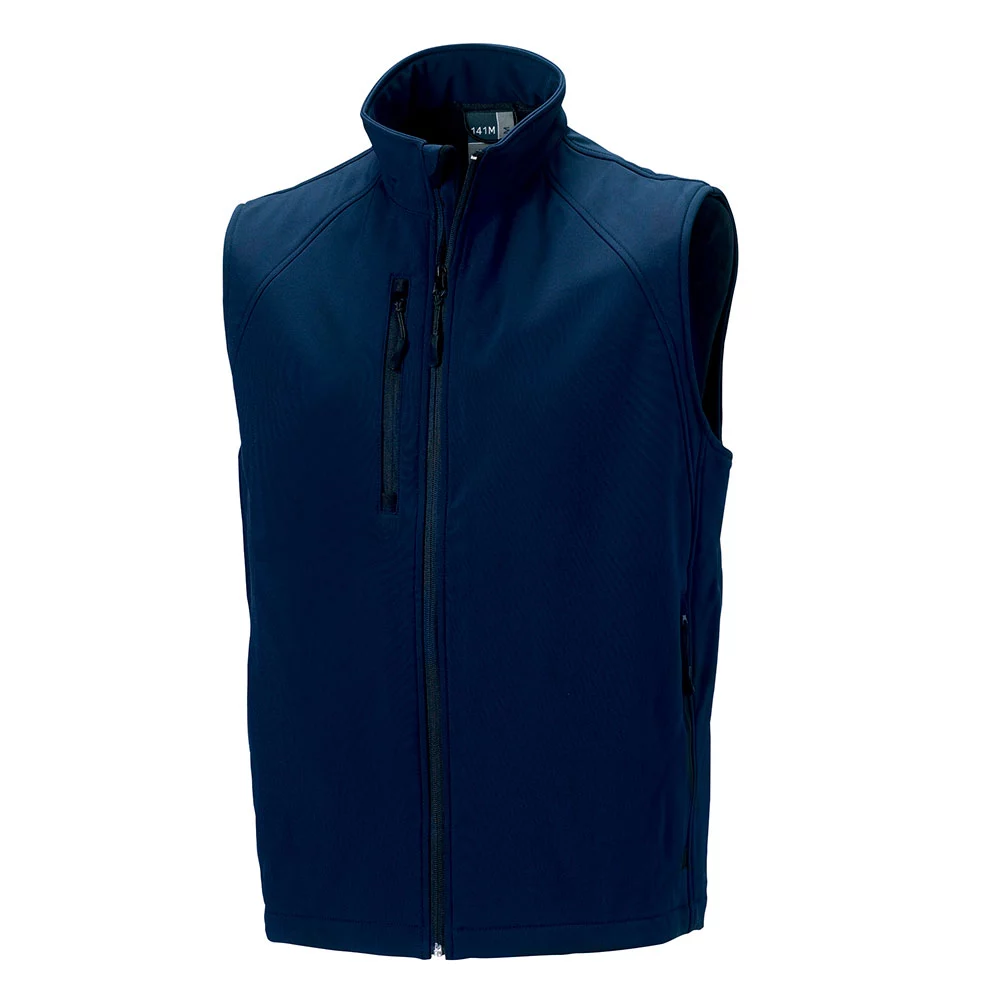 Russel men's softshell vest, 3-layer softshell material, waterproof 5000mm (column of water), windproof, breathable, microfleece lining