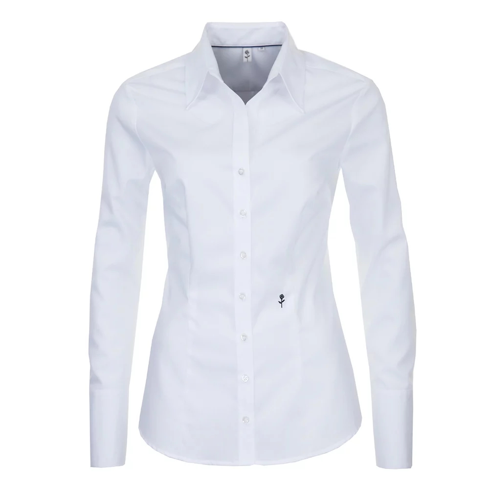 Long-sleeved blouse with Kent collar and double stitching, tone-on-tone buttons, figure-skimming cut, absolutely no-iron and washable at 40 degrees Celsius
