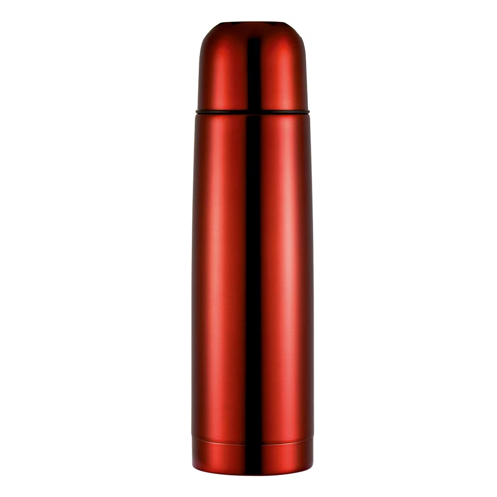 Vacuum-insulated stainless steel thermo flask, with push-open-and-close mechanism