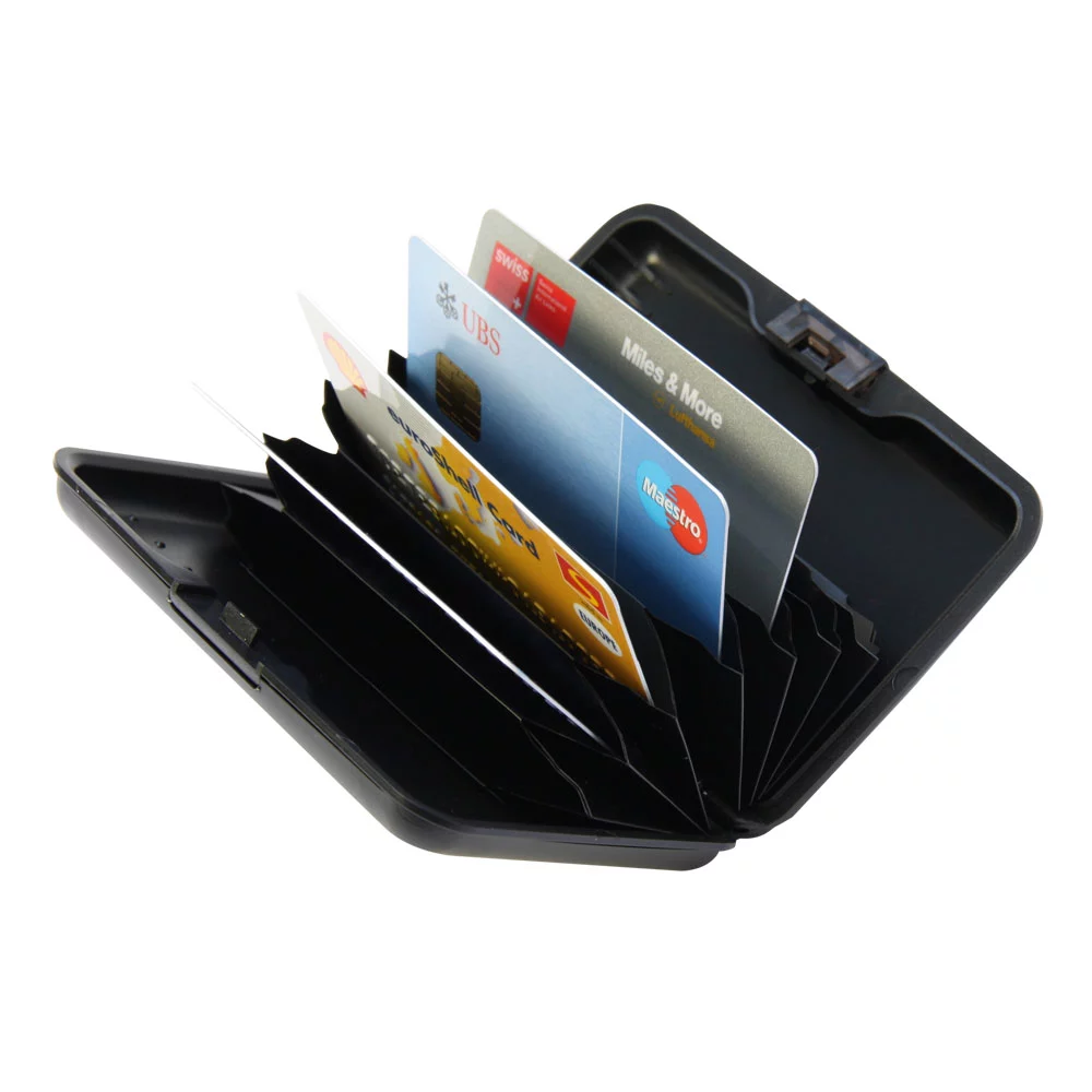 Étui compact en aluminium, pour agencer vos cartes de visite et vos cartes de crédit avec clarté.