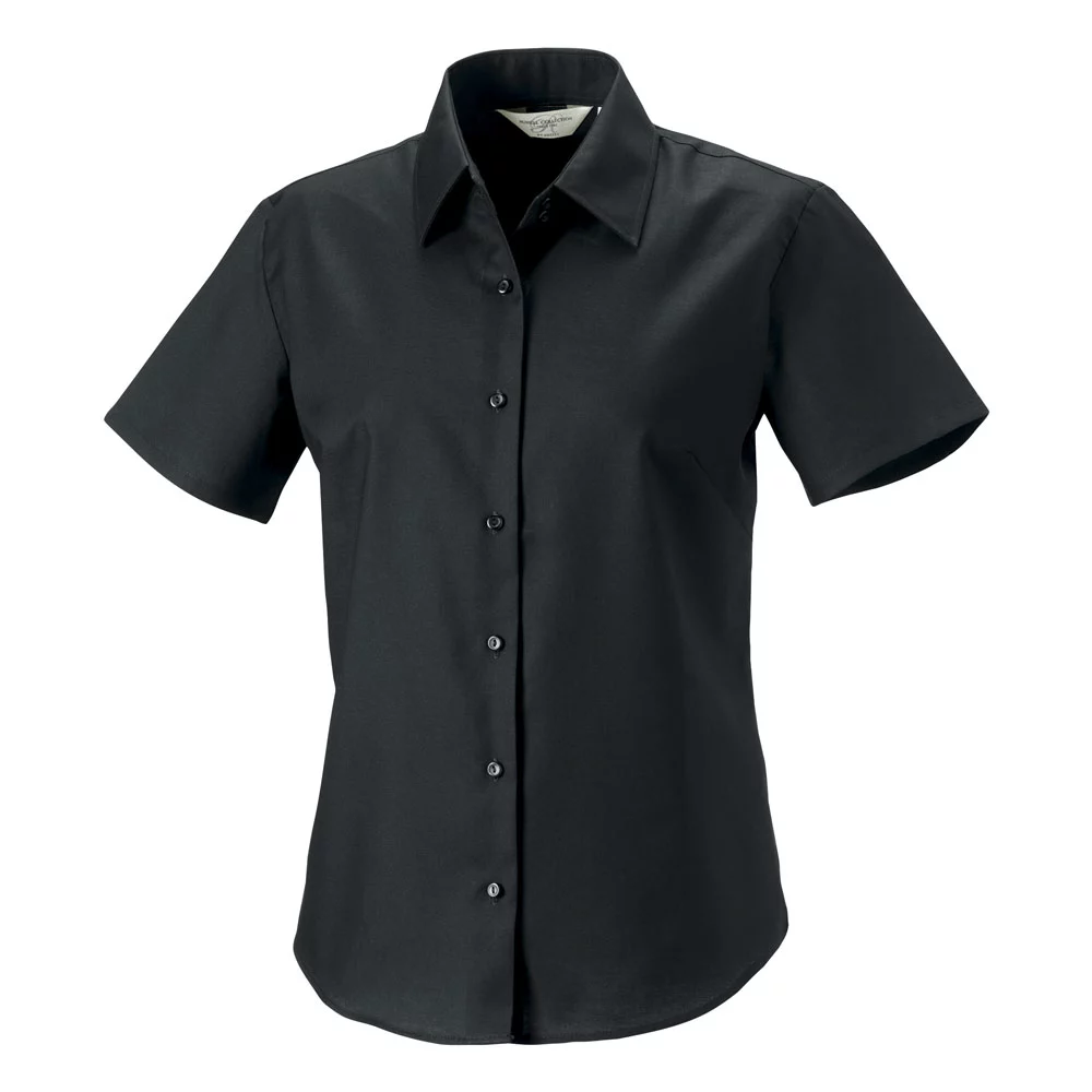 Chemise pour femme à manches courtes et col classique, pinces au niveau de la poitrine et dans le dos pour une coupe parfaitement ajustée, bord arrondi