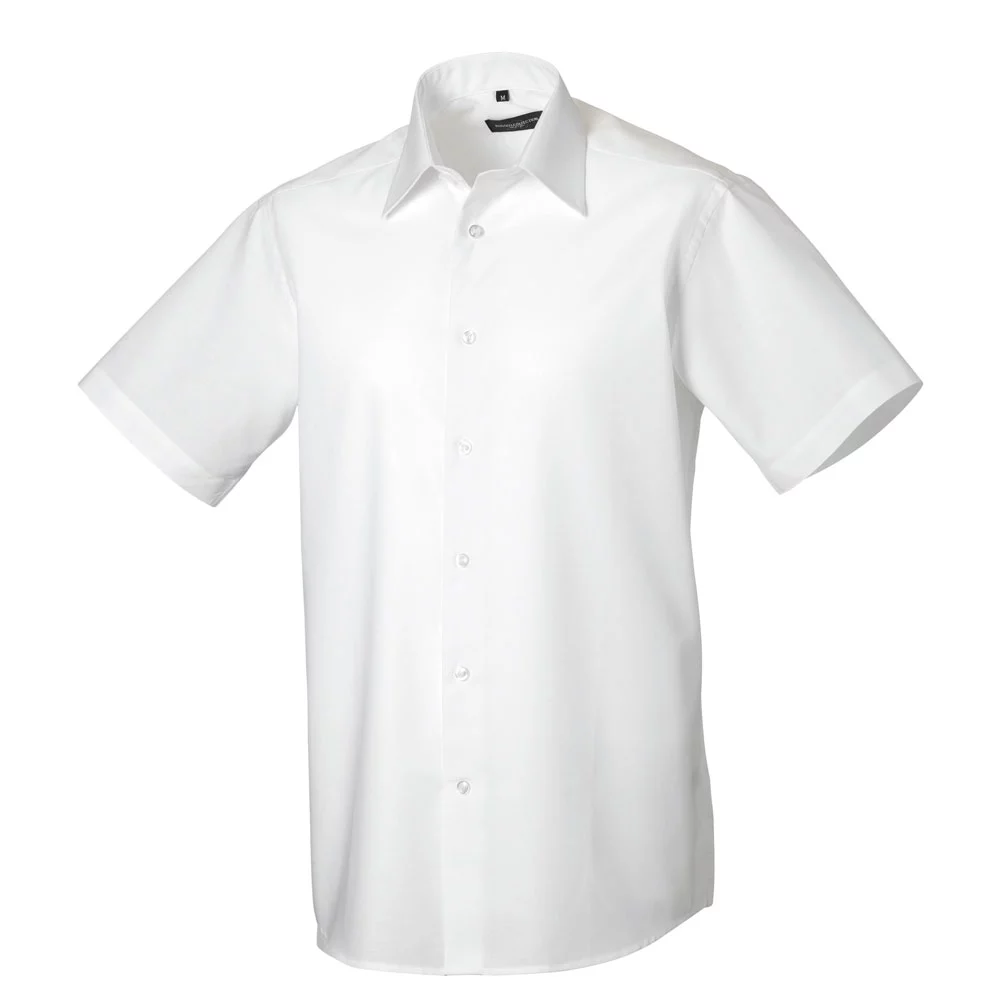 Chemise cintrée à manches courtes pour homme, col rigidifié, rebord de manche replié deux fois, bord arrondi