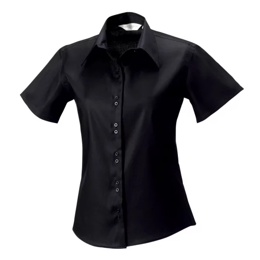 Chemisier femme à manches courtes, textile non repassable, col coupé tendance, fermeture à boutons doubles, cintré