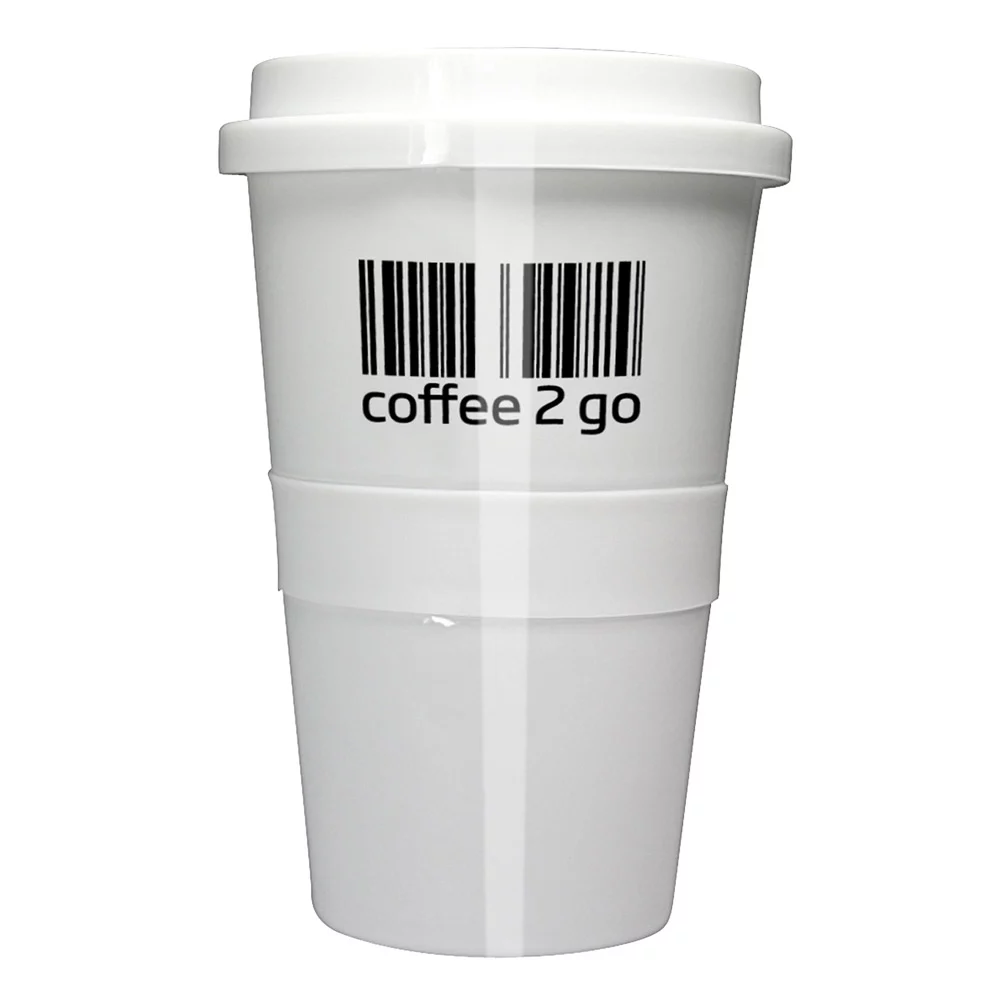 Tasse à café élégante avec couvercle plastique de qualité et bague silicone à nervures (protection thermique), contenance 3 dl