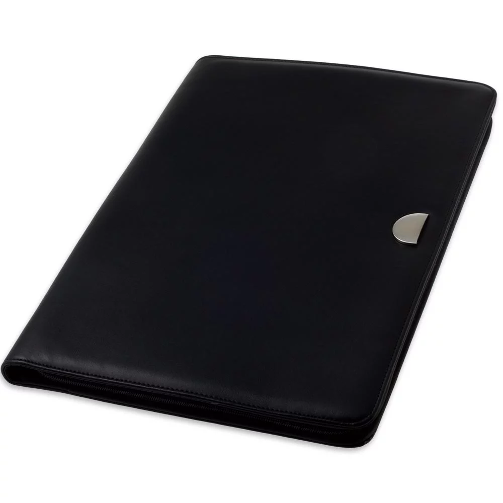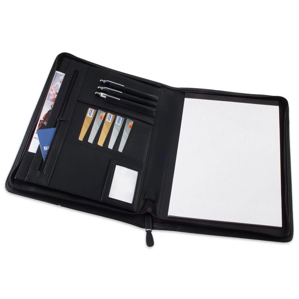 Conférencier sympa avec fermetures éclair externes et internes, agenda et insigne métallique en demi-lune (au recto), bloc-notes à carreaux fourni