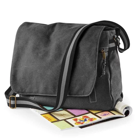 Sacoche à bandoulière tendance, 100% toile, poche principale avec fermeture éclair, poches supplémentaires au dos, fond rembourré, avec sangle d’épaule ajustable en longueur