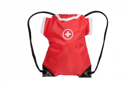 Sac léger en polyester de qualité (300 x 450D), avec coins inférieurs renforcés, cordons réglables qui servent de bretelles.