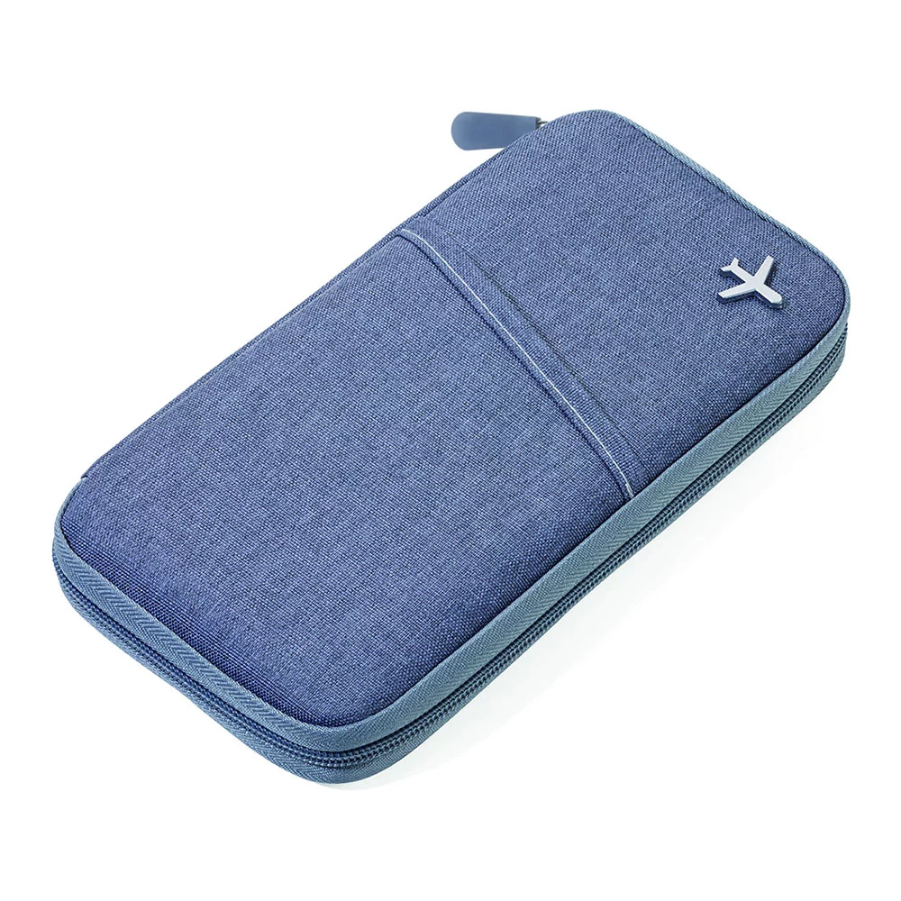 Étui pratique en polyester avec feuille de protection contre la lecture non-autorisée des puces RFID. Pour les documents de voyage importants, avec 12 poches intérieures et boucle intégrée pour stylo, commande min 50 pièces