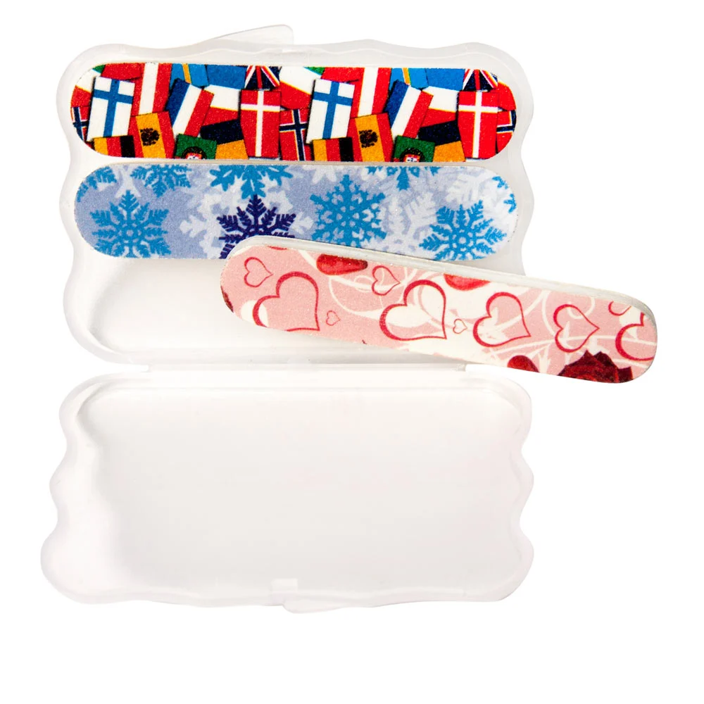 Set de limes à ongles de qualité studio cosmétique pour le traitement professionnel des ongles artificiels et naturels, livré dans un étui pratique en plastique