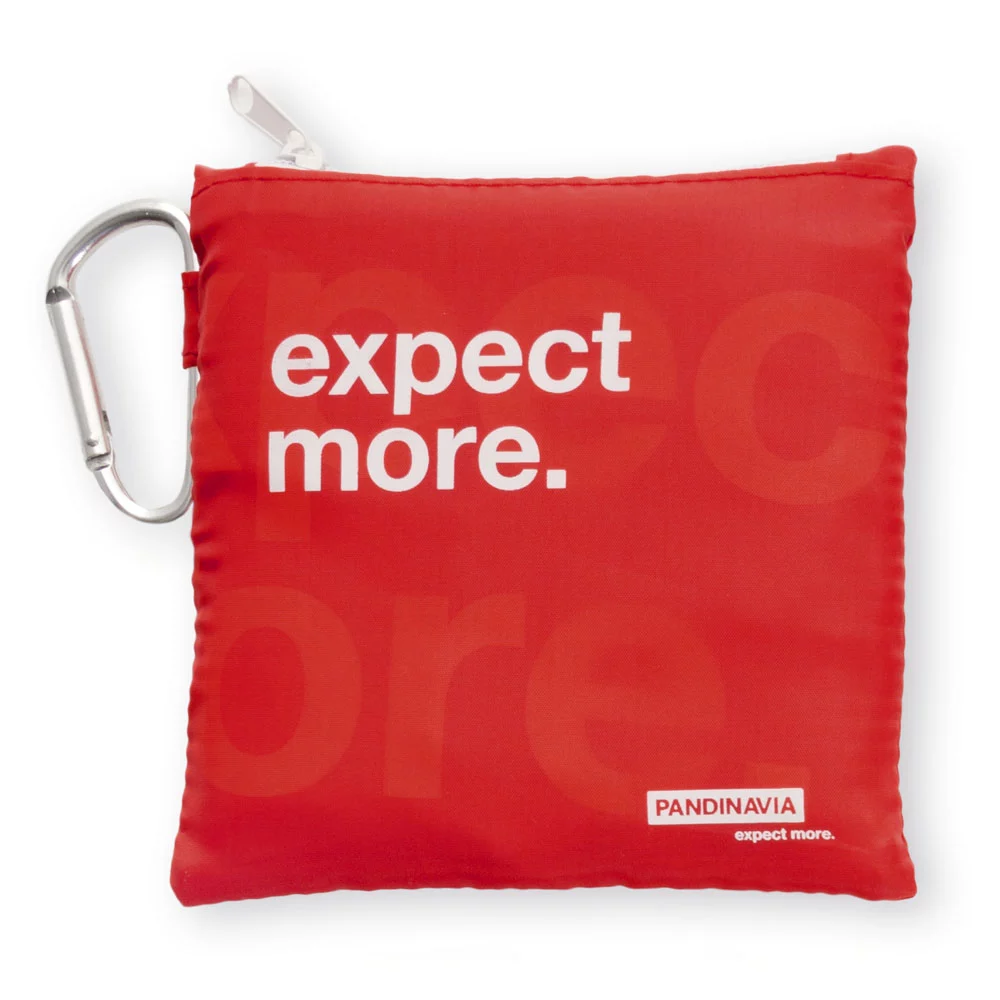Petit shopping bag tendance et pratique en polyester, avec pochette de rangement et mousqueton.