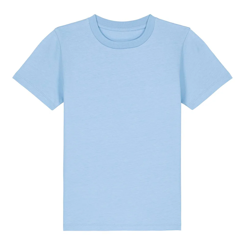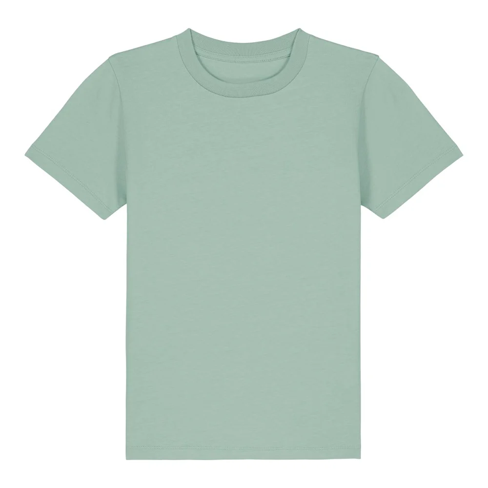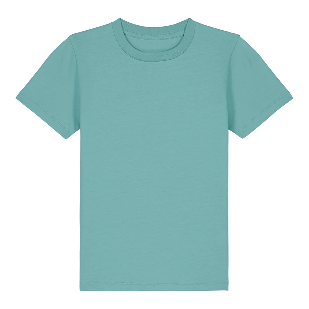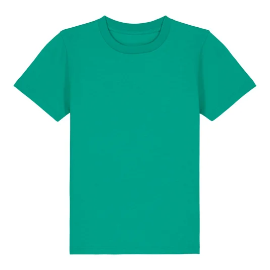 T-shirt pour enfants en coton bio avec une coupe normale. Manches montées, bord-côte 1x1 à l'encolure avec bande de propreté, large double surpiqûre aux extrémités des manches et à l'ourlet inférieur. En jersey simple. Certifié Vegan, Fair Wear, Gots et Oekotex.
