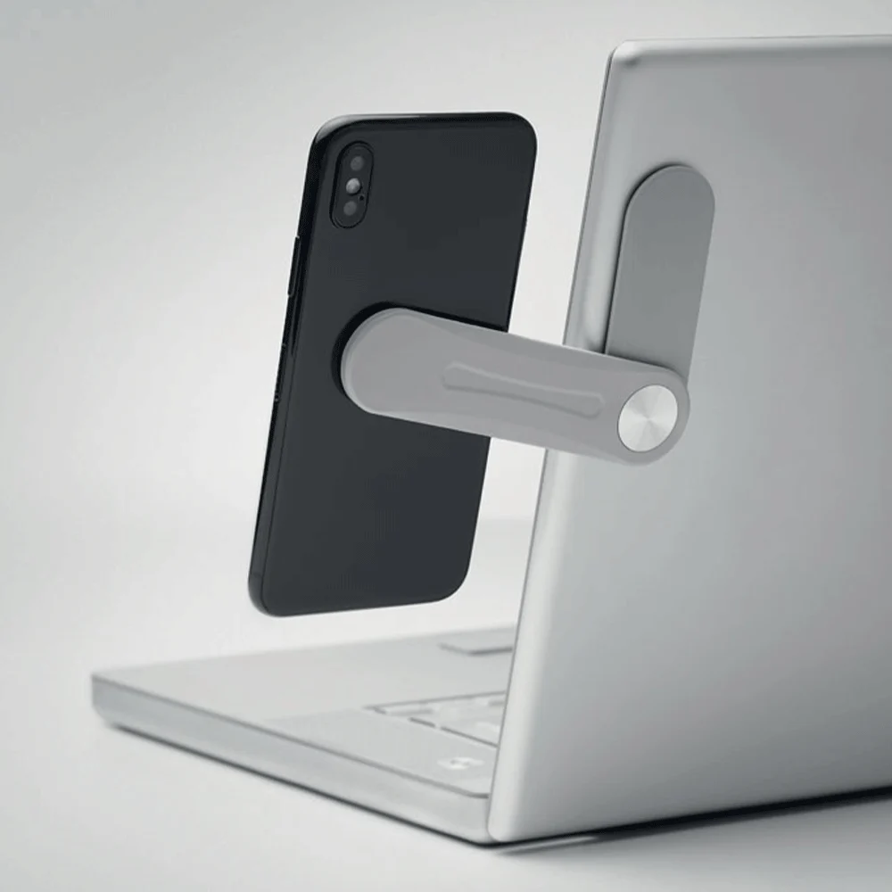 Support réglable pour smartphone en plastique, avec autocollant 3M au dos pour le fixer à l'ordinateur portable, grâce au support magnétique, le smartphone tient facilement et fortement sur le support