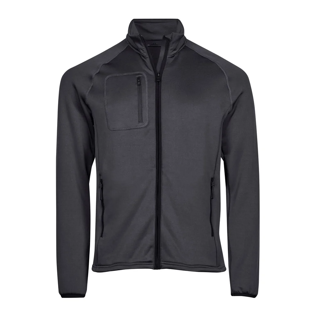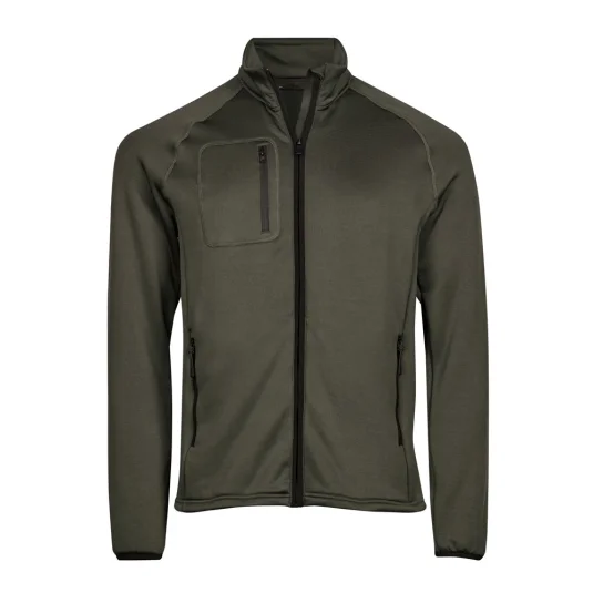Veste polaire élastique avec manches raglan et intérieur gratté.Col montant avec protection du menton, 2 poches latérales et poche de poitrine avec fermeture éclair.Certifiée selon OEKO Tex Standard 100