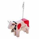 Un classique des souvenirs suisses qui se rend utile. Vache à taches colorées avec cloche, Swiss made, objet d’artisanat produit avec du bois certifié, avec pince pratique pour tenir une photo ou un mémo.