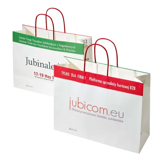 Sac en papier kraft FSC 170 g/m2 (revêtement mat ou brillant disponible), avec cordons en papier tressé, revers renforcé et fond en carton, également disponible en d’autres tailles (prix sur demande), commande min 500 pièces