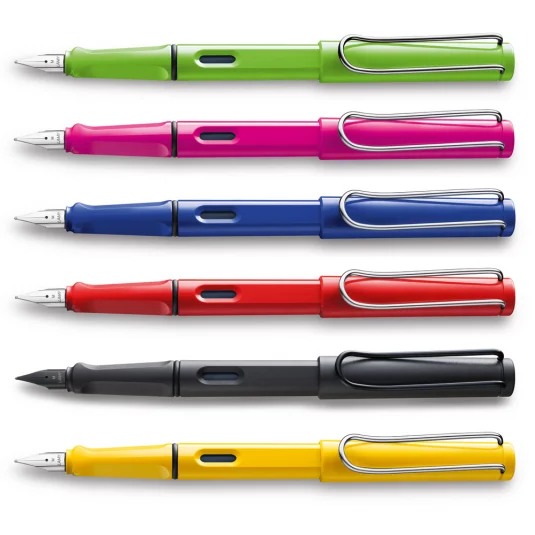 Stylos robustes et fonctionnels en plastique ABS très résistant, muni d’un grip à cavités et d’une cartouche de grande capacité LAMY M 16 bleu, avec une mine roller LAMY M 63 bleu ou une plume en inox.