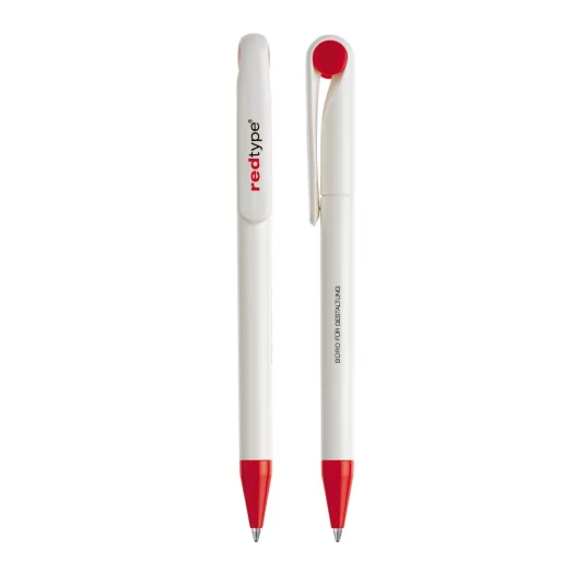 Fabriqué en Suisse, stylo à bille rotatif en plastique, avec large clip et cartouche de grande capacité (bleue ou noire) en plastique