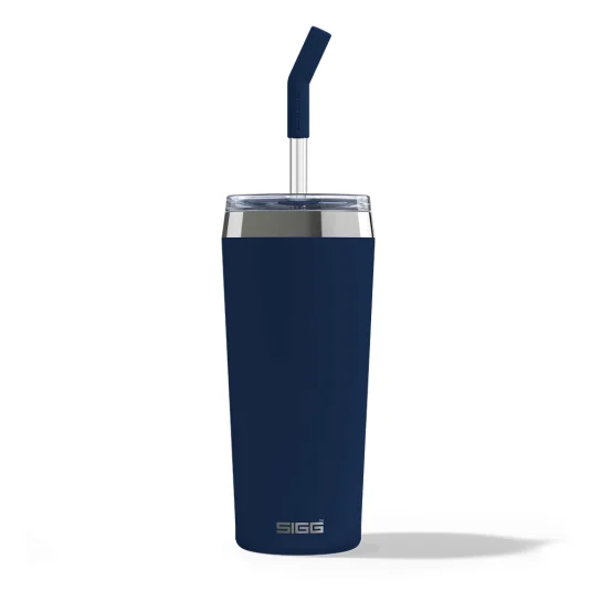 Stylé, tendance, de grande qualité ! Qualité & design suisses - gobelet isotherme à isolation par le vide en acier inoxydable de haute qualité, recyclé à 90%, avec construction à double paroi revêtue de cuivre pour garder les boissons froides jusqu'à 24 heures ou chaudes jusqu'à 4 heures, avec paille en verre robuste ainsi que brosse de nettoyage pratique, contenance 0,6 l