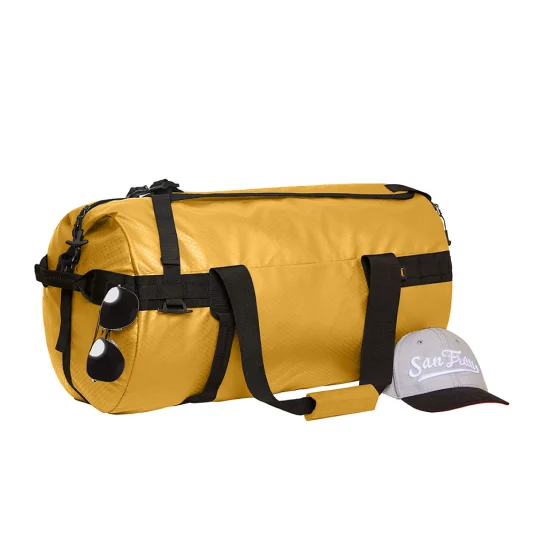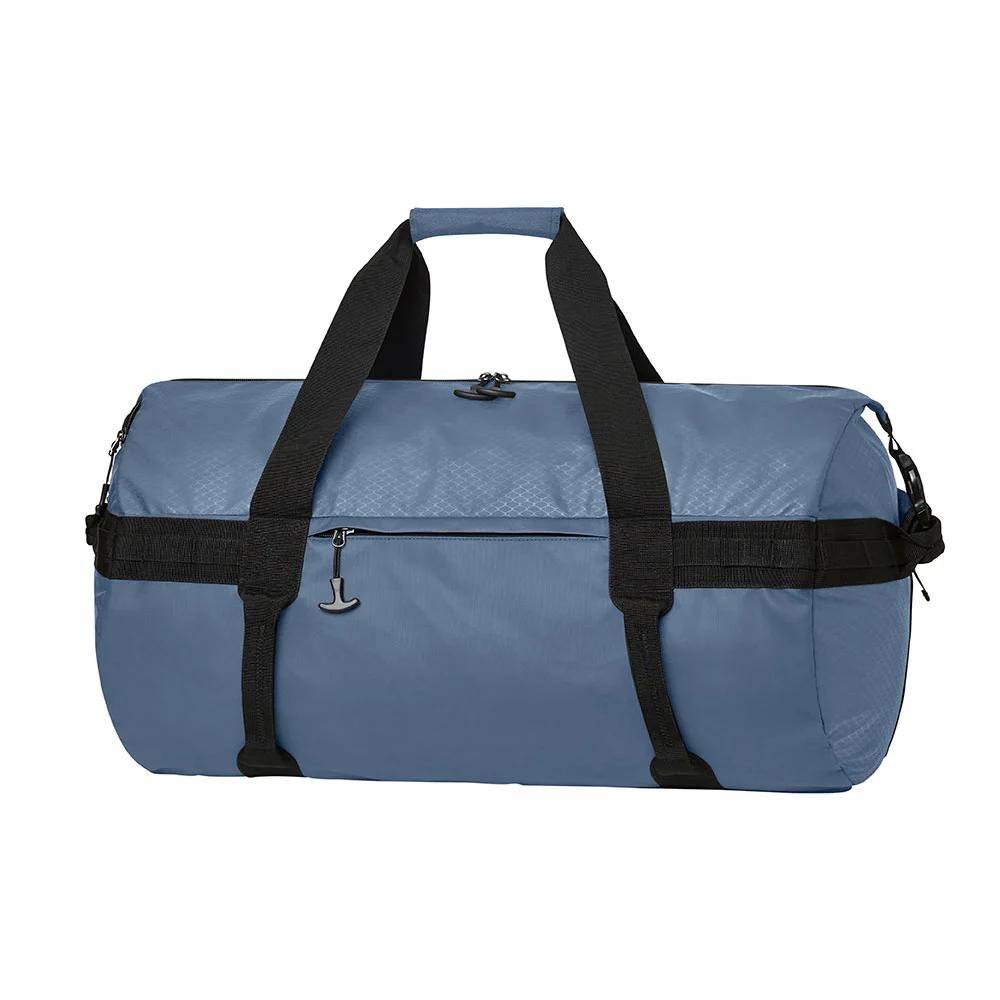 Sac de voyage sportif en PET recyclé avec fonction sac à dos ; avec compartiment principal spacieux, fermetures latérales, compartiments extérieurs supplémentaires ainsi que bretelles cachées, rembourrées et réglables en longueur.