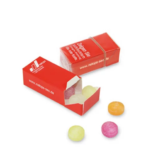 Mini-bonbons aux saveurs suivantes : cerise-menthol + vitamine C, mélange de fruits, menthe poivrée, durée de conservation 24 mois, volume de commande minimum 1000 pièces