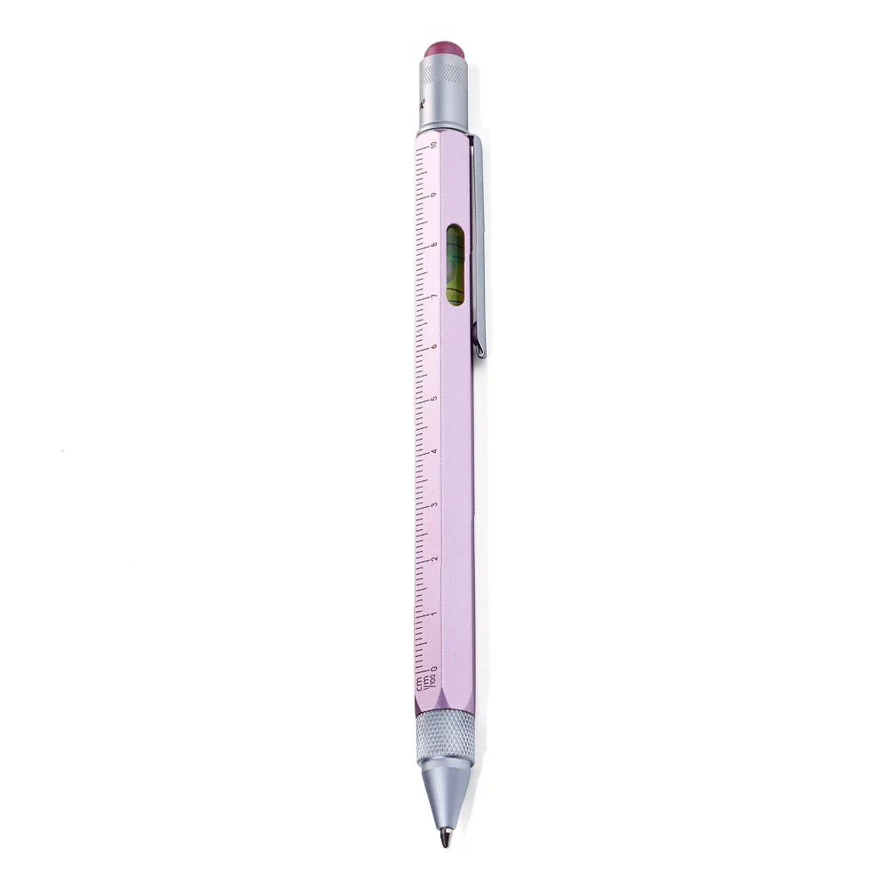 All in one ! Stylo-bille multifonction unique en laiton, avec 4 graduations en centimètres différentes (1 : 20, 1 : 25, 1 : 50, 1 : 100), niveau, tournevis plat et cruciforme et stylet avec mine noire