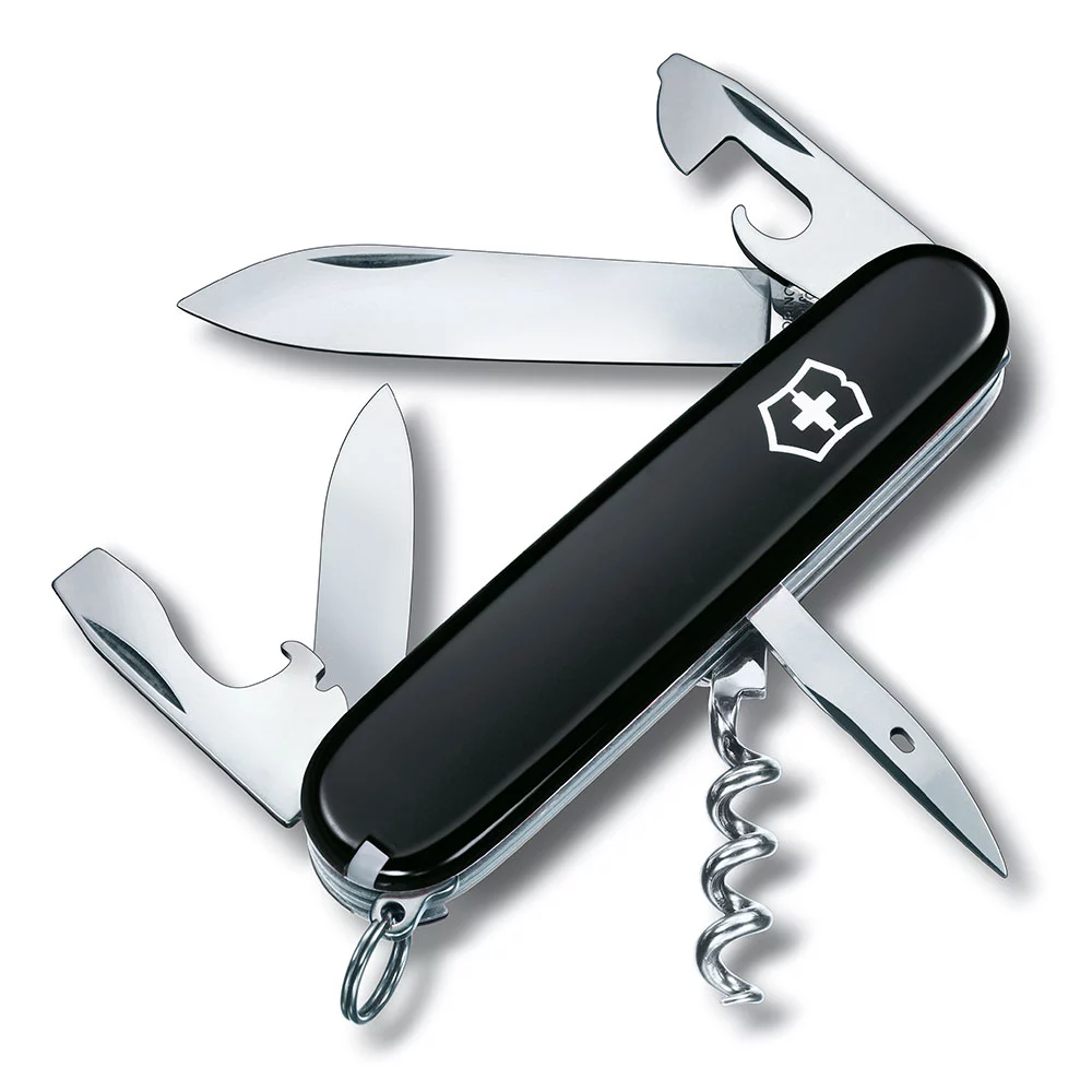 L’une des meilleures ventes de Victorinox ! En acier inoxydable haute qualité, avec 12 fonctions: grande lame, petite lame, ouvre-boîte avec petit tourne-vis, tire-bouchon, poinçon alésoir avec chas d’aiguille, cure-dents, pincette, décapsuleur avec tournevis, dénudeur de fil électrique et anneau (porte-clé)