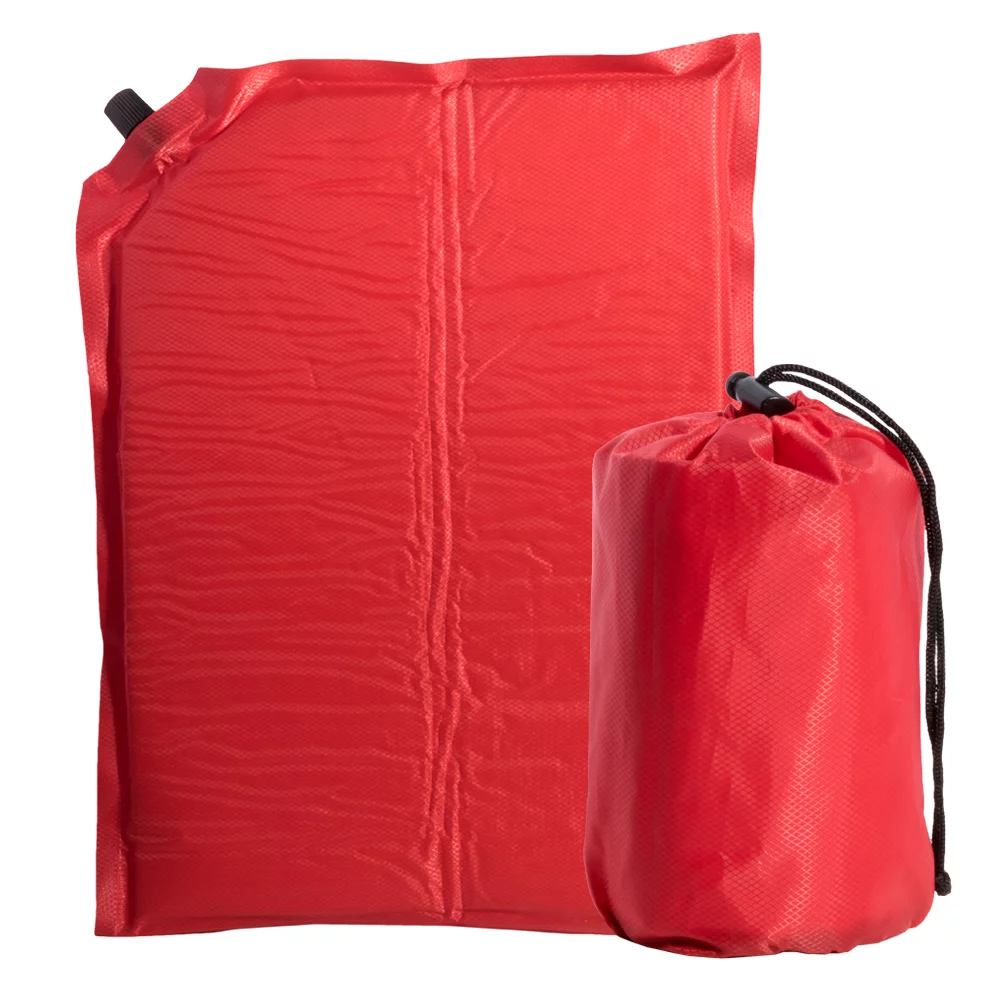 Coussin très pratique à emporter à des événements ou en randonnée, fourni avec un petit sac, se gonfle de lui-même et se remballe facilement, taille standard rectangulaire, commande min 500 pièces (formes spéciales possibles dès 1000 pièces)