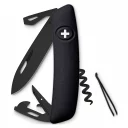 Fonctions: Couteau, fil de perçage et de perforation, poinçon, décapsuleur, chas, ouvre-boîte, tournevis plat n ° 1, tournevis plat n°3, tire-bouchon, pince à épiler