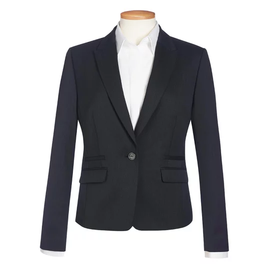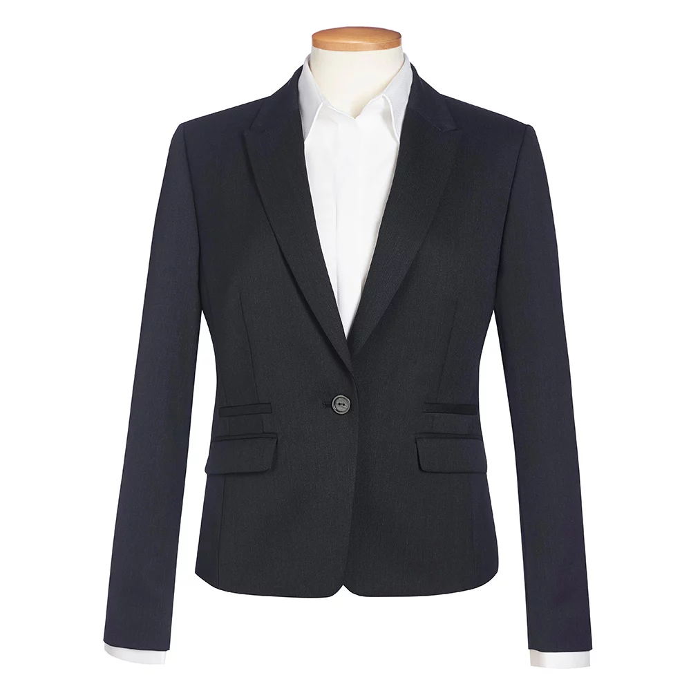 Blazer court à coupe étroite avec 1 bouton centré à l’avant, deux poches passepoilées, deux poches, une poche intérieure, dos avec coutures à la mode, lavable en machine et infroissable.