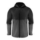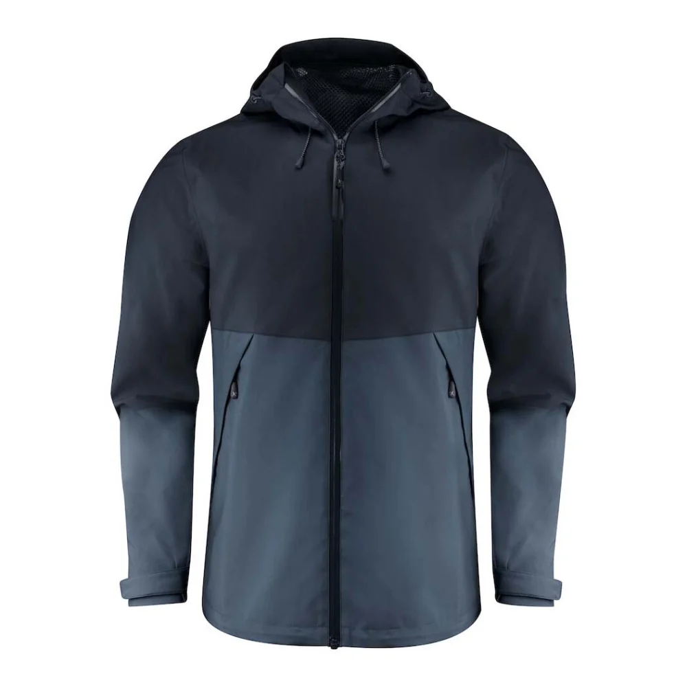 Veste imperméable moderne pour hommes avec capuche comme élément du concept de superposition. Veste shell bicolore avec coutures collées. Fermeture à glissière étanche et poches latérales couvertes avec fermeture à glissière. Bas des manches avec fermeture velcro réglable. Doublure intérieure en mesh avec poche intérieure gauche et fermeture éclair de finition. Détail réfléchissant au dos. La capuche et l'ourlet sont réglables avec des cordons élastiques.