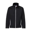 Bionic-Finish® Eco (softshell 3 couches avec membrane hydrophobe), sans fluor ni PFC, imperméable au vent et à l'eau (5000 mm), respirant (5000 g/m² en 24h), col montant, inserts Hydroshell Air au niveau des aisselles, poches poitrine, bras et latérales avec zip, poche média en filet à l'intérieur, poignets réglables.