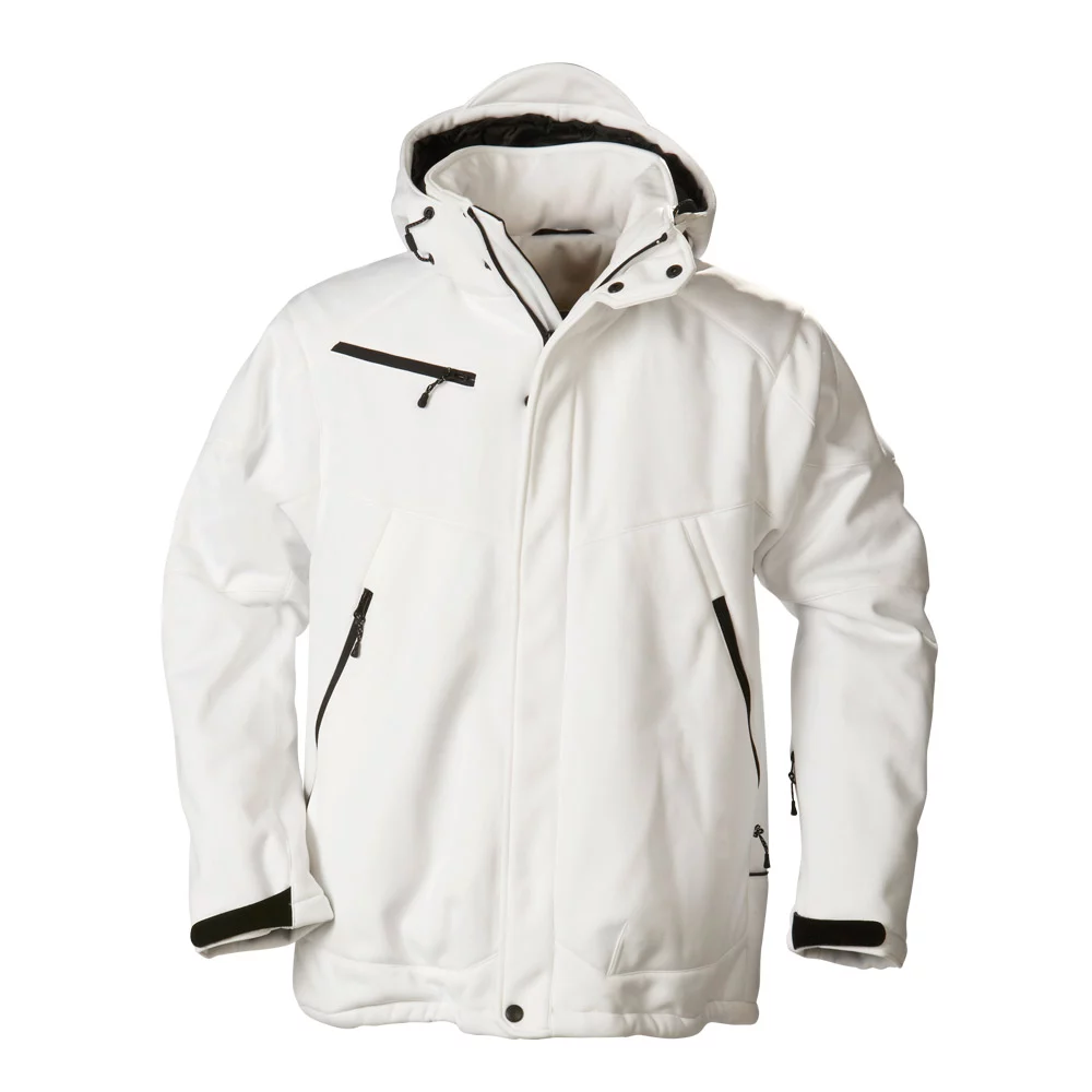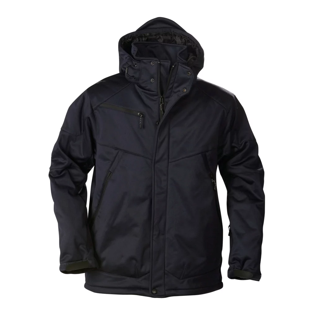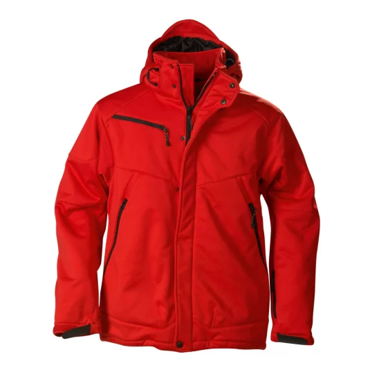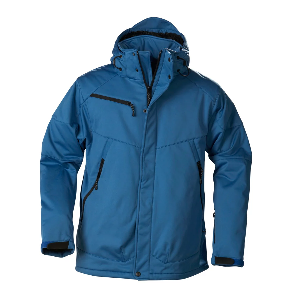 Veste softshell rembourrée, capuche amovible, manches ergonomiques, cordon dans l'ourlet, fermetures Velcro aux manchettes, poche frontale et sur la poitrine avec fermeture éclair, 2 poches intérieures avec fermeture éclair et 1 poche filet