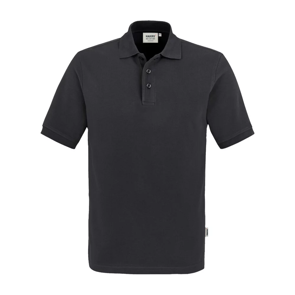 Unisex Polo classique avec fine patte de boutonnage à 3 trous de grande qualité, avec boutons incassables à fixations ultra résistantes, ton sur ton avec lettrage HAKRO gravée au laser.
