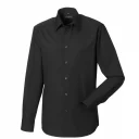 Chemise pour homme à manches longues à coupe cintrée, col renforcé, manchettes réglables grâce à deux boutons, bord rond
