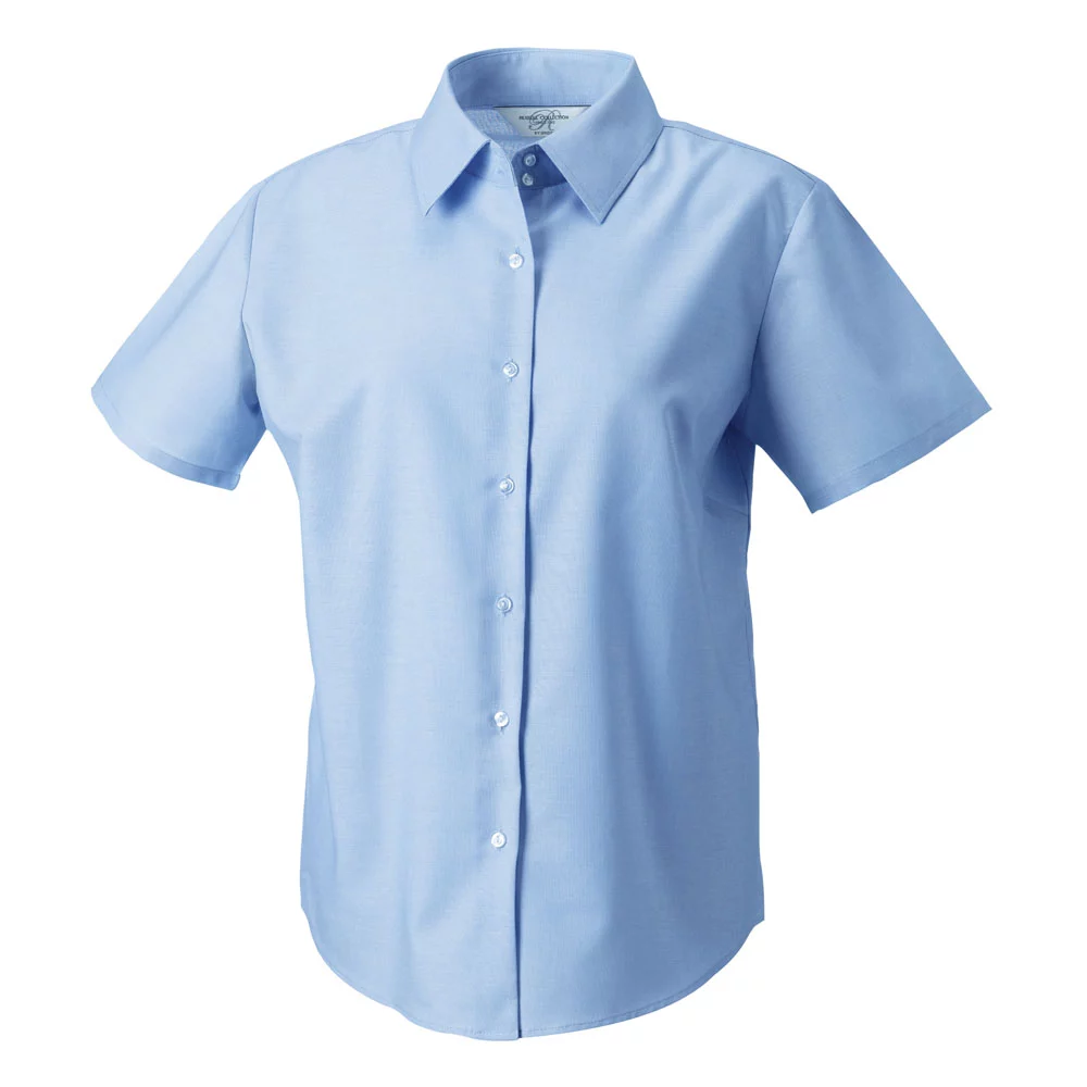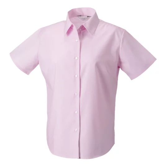 Chemise pour femme à manches courtes et col classique, pinces au niveau de la poitrine et dans le dos pour une coupe parfaitement ajustée, bord arrondi