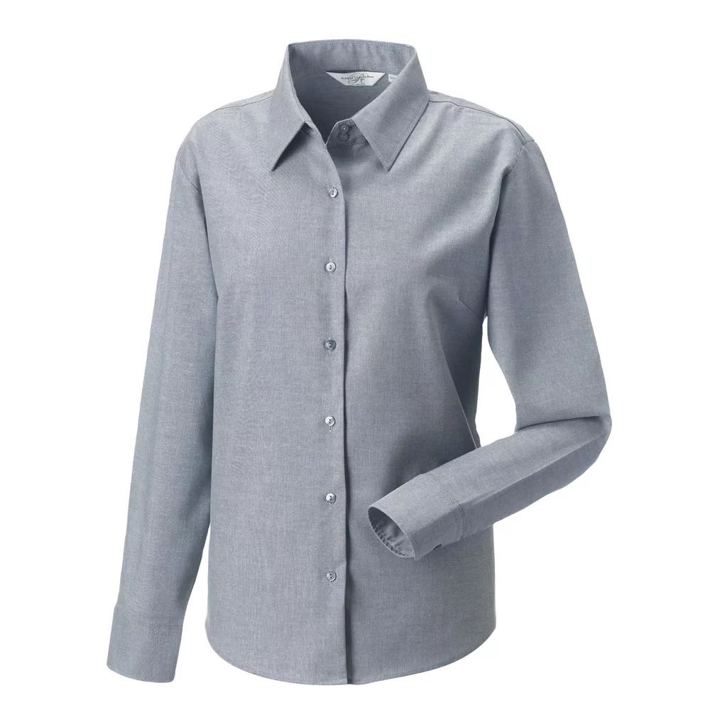 Chemise pour femme à manches longues et col classique, pinces au niveau de la poitrine et dans le dos pour une coupe parfaitement ajustée, manchettes réglables grâce à deux boutons, bord arrondi