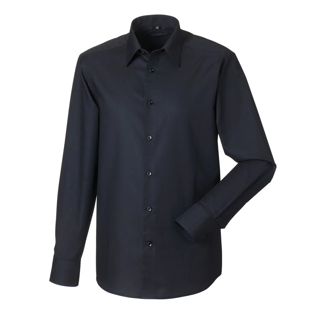 Chemise cintrée à manches longues pour homme, col rigidifié, manchettes réglables grâce à deux boutons, bord arrondi