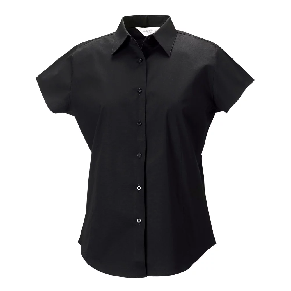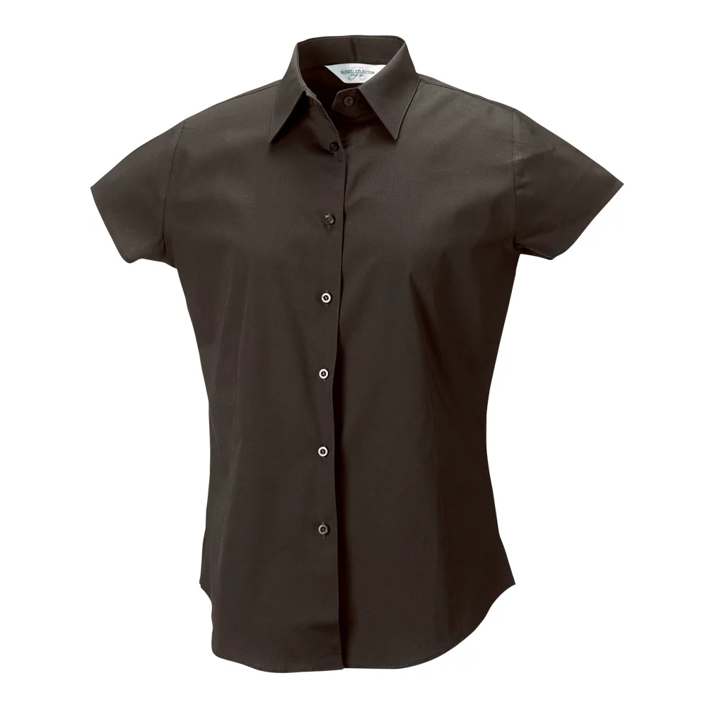 Chemisier femme stretch à manches courtes, col classique, pince dans le dos et à l'avant pour une coupe cintrée, manches courtes coupées, ourlet arrondi