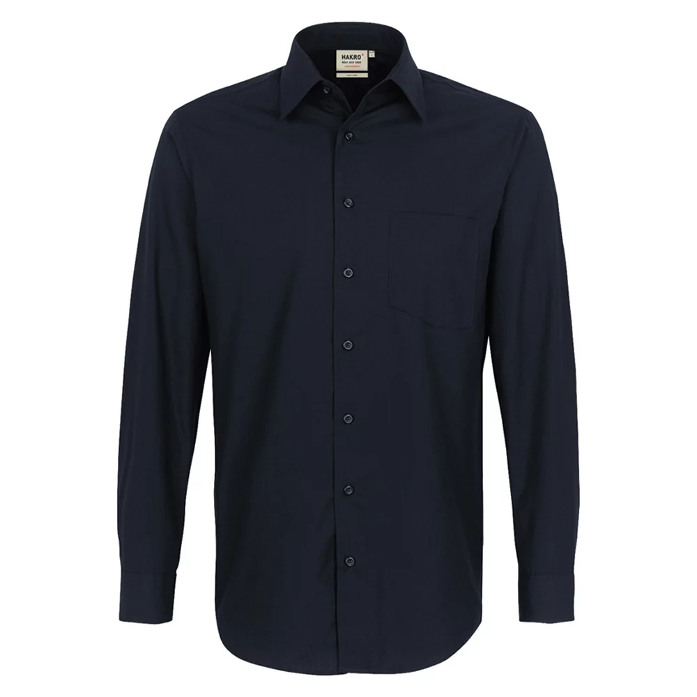 Chemise à manches longues particulièrement résistante avec col Kent, poche poitrine plaquée, ourlet légèrement arrondi, patte de boutonnage avec 4 boutons – cousus en croix et à double nœud pour une meilleure tenue –, bouton de rechange, doubles coutures latérales, baleines de col intégrés pour une tenue parfaite et poignets réglables.