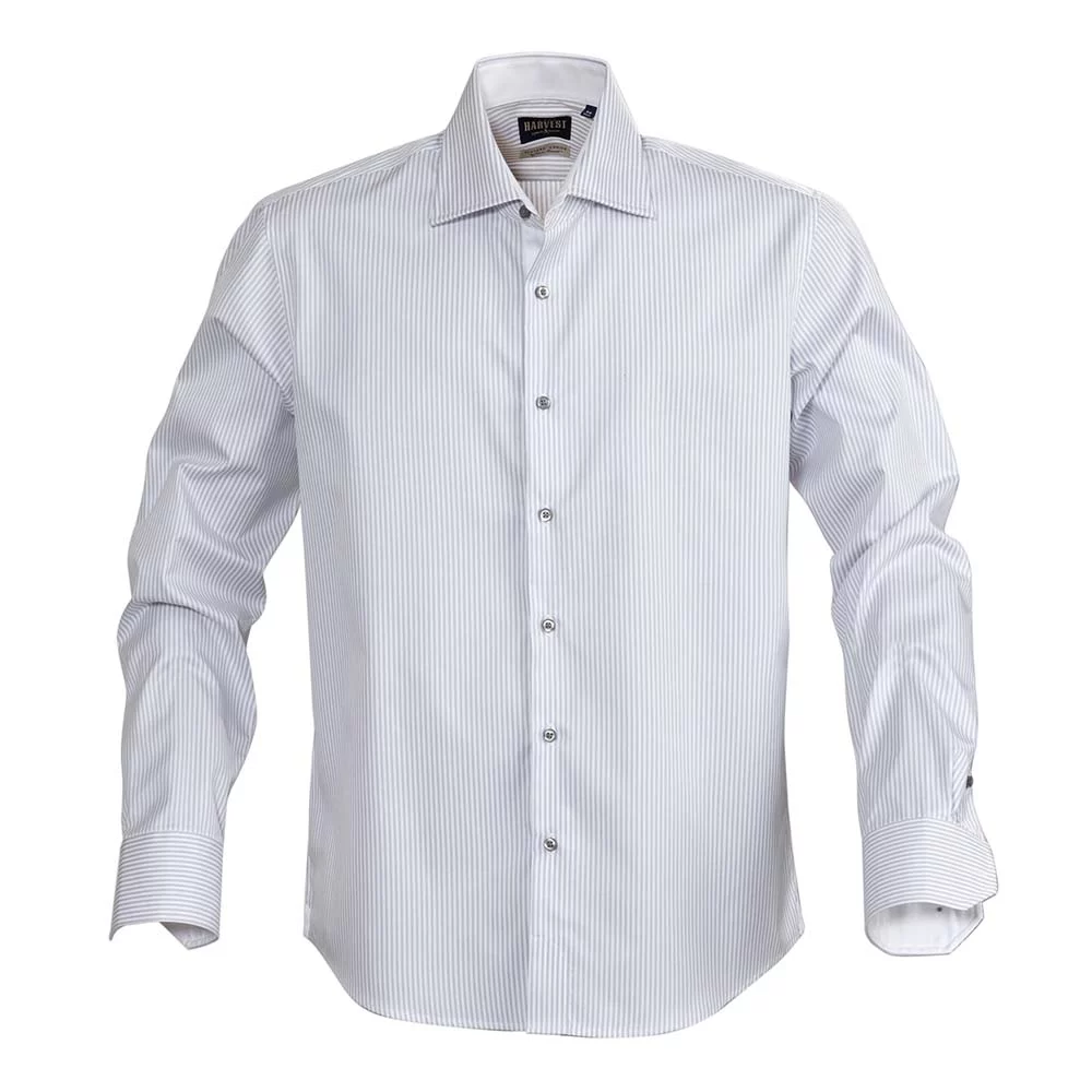 Chemise classique en coton peigné avec traitement easy care. Coutures, col et manches renforcés. Motifs à rayures avec couleurs contrastées sous le col, sur la boutonnière et sur les manchettes.
