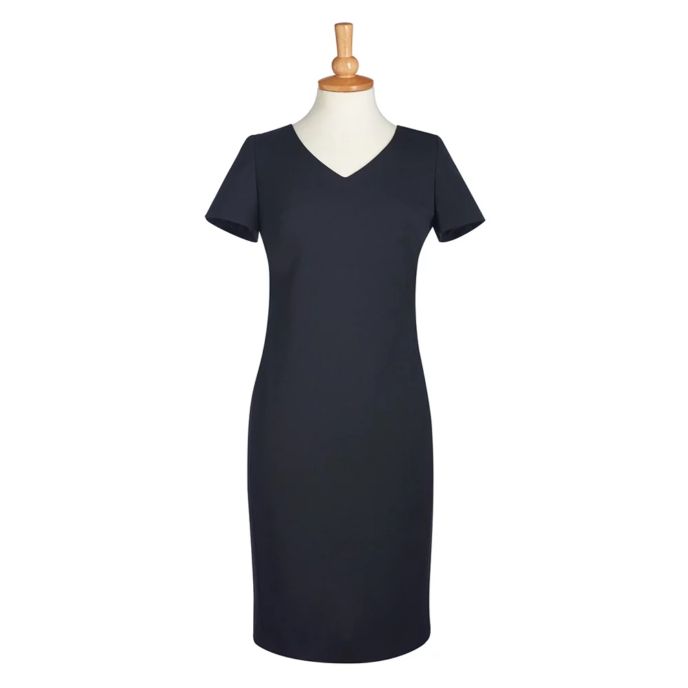 Robe élégante avec décolleté en V, manches courtes, fente dans le dos, doublure stretch, lavable en machine et infroissable.