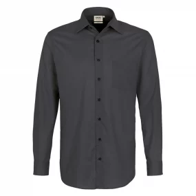 Blouse à manches longues avec col classique à un bouton, boutons ton sur ton, poche de poitrine en V à gauche, manchettes réglables par deux boutons, coupe classique, ourlet arrondi, facile d'entretien